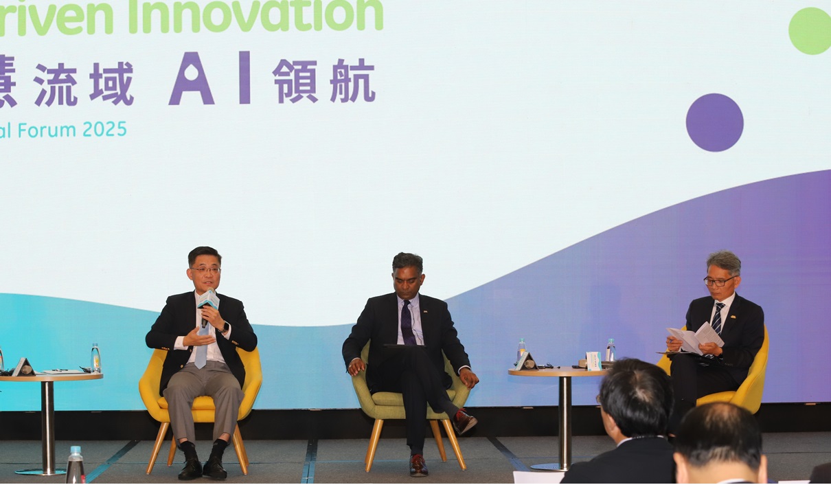 綜合座談部分,則由賴次長擔任主持人,與國立成功大學沈孟儒校長、AMD臺灣區商用業務處資深業務副總經理林建誠及國際水協會執行董事Kalanithy Vairavamoorthy共同討論「AI如何成為推動智慧流域治理新引擎」。首先,沈孟儒校長表示,極端氣候下水資源的穩定供應對於公共健康的維繫至為重要;而醫學、水利與工程等跨領域的研究,可導入AI技術作為橋接的介面,以建構防災監測與健康防護的整合體系。隨後,林建誠副總則從運算基礎架構的角度,闡述先進運算技術在水領域的應用面向及發展。最後,Kalanithy Vairavamoorthy執行董事介紹目前國際推動智慧流域的相關案例,並期待今後AI在提升整體流域治理的各個面向都能扮演更關鍵的角色。