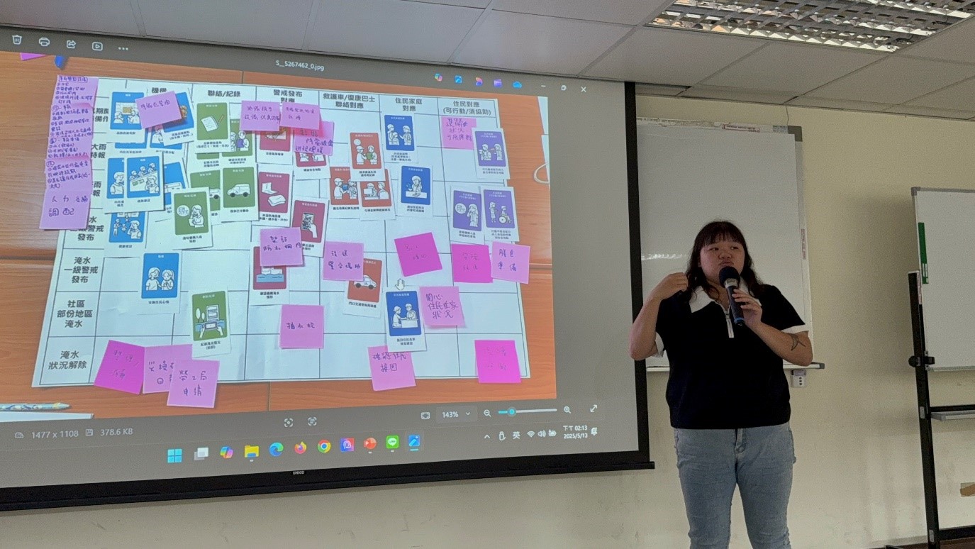 課程設計除水災因應對策及應變作為、災前整備及災害應變經驗、及防災工具App的分享外,更藉由情境假設,進行水災演練的兵棋推演,強化自助及互助的應變能力。