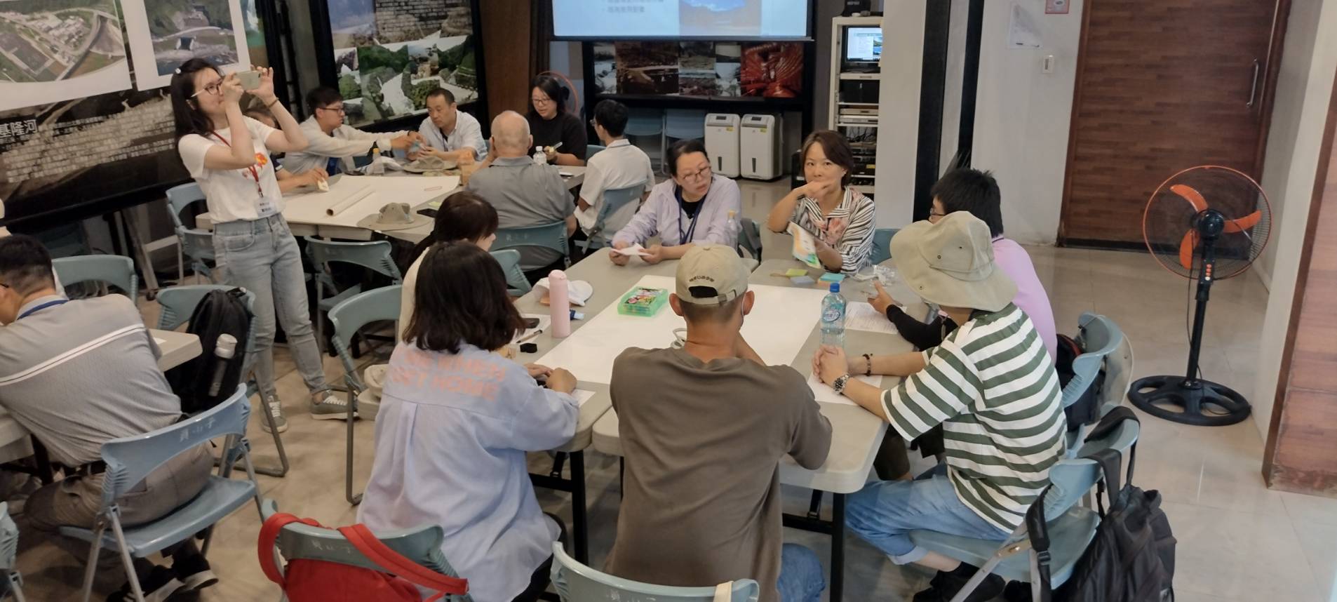 本次工作坊的第二部分,從下午的工作坊開始,郭瓊瑩老師團隊帶領學員工作坊實作,聚焦於員山子分洪管理中心本身,首先由員山子分洪管理中心王朝勲主任介紹分洪道的地理位置、設施與功能後,郭老師將學員分為三組,分別探討以下主題: