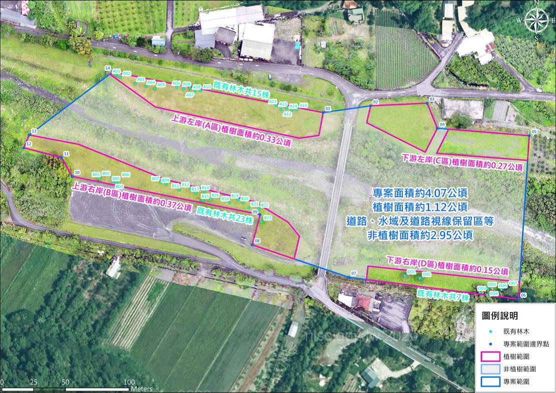 第一河川分署也配合政府植樹減碳政策及「造林與植林溫室氣體自願減量專案輔導計畫」推動,在大礁溪橋上下游的高灘地種植數棵楓香樹,透過專業規劃、悉心培育,多年後期可見樹海繁盛,不僅達到減碳之目的,亦可藉由樹木涵養水源及保護土壤之特性,達到鞏固堤防免於沖刷之目的。