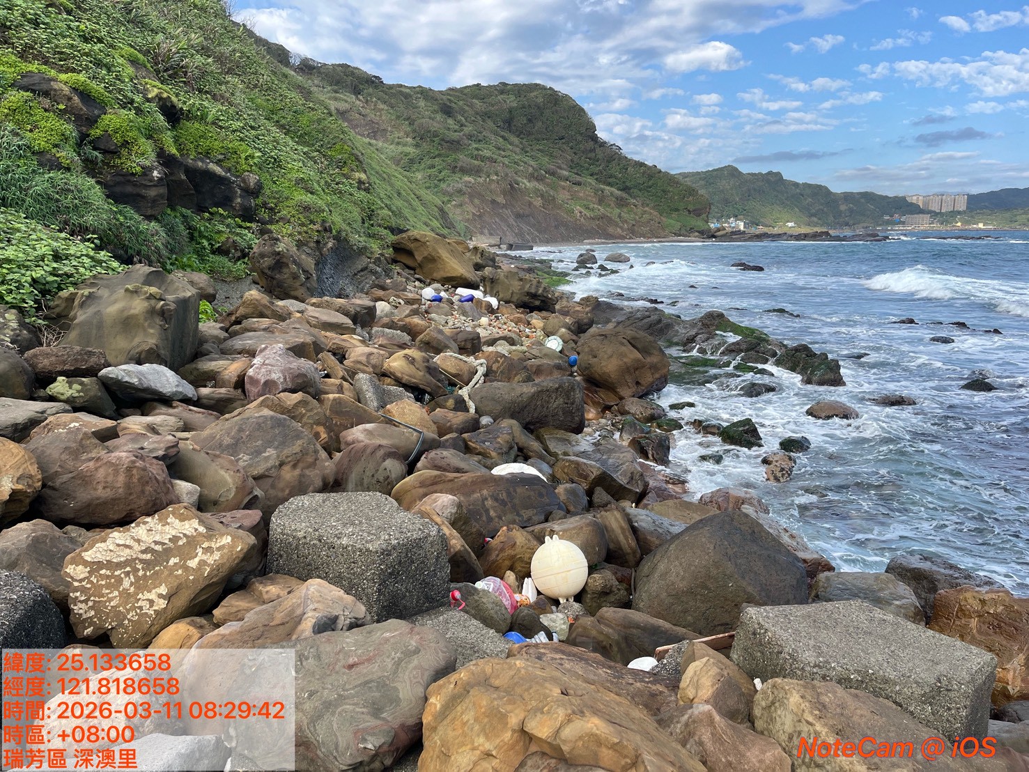 由十河分署員山子分洪管理中心王主任帶領同仁們,在東北季風的天氣,岩縫中及大石塊間撿起許多廢棄漁具、拖網浮標及保麗龍、保特瓶……,請大家共同守護海洋才會有乾淨美麗的海岸線。